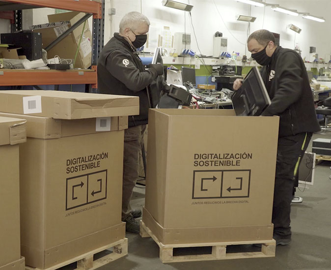 However, we should point out that none of this would have been possible without the support of hundreds of companies and self-employed people from all over Spain, who have contributed to the success of ‘Sustainable Digitalisation’ through their donations of computers, tablets, monitors and other equipment. Thanks to these donations, we have already been able to collect more than 3,000 devices, although the collections continue and the final quantities are forecast to be significantly higher. Once reconditioned, they will be distributed through different NGOs we collaborate with to give them a second life in the hands of children, the elderly and other groups at risk of exclusion who need them.